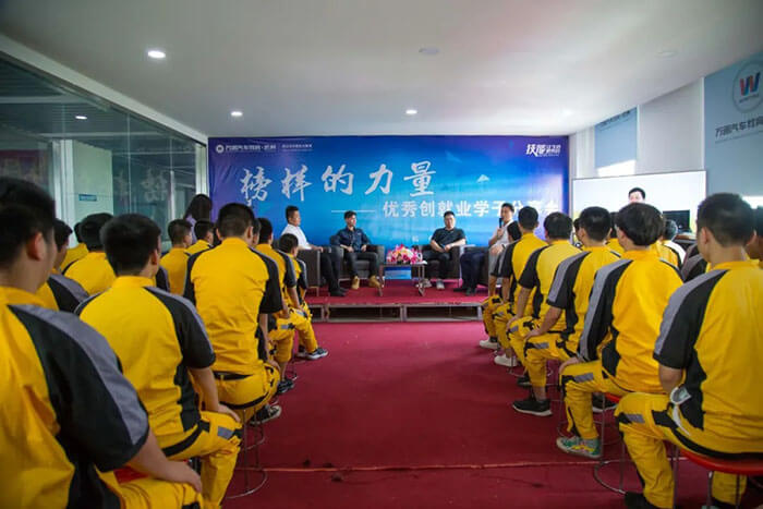 王政保在与学弟们的交流分享过程中,提起了自己在学校的经历和当初自己学习汽车美容的初衷和想法,他说:“在杭州万通的学习使我的专业知识有了扎实的基础。是杭州万通让我学会了不断充实自我、挑战自我、超越自我,是杭州万通让我懂得了想要将梦想被安慰现实,就必须打下扎实的基础。通过学习一技之长,让技能改变生活。感谢母校助我迈出成功的第一步。”