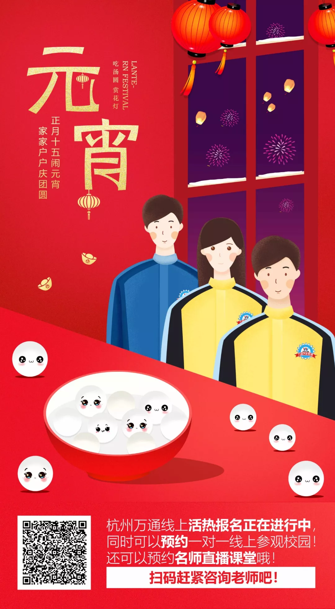 而且即便是不那么热闹,大家也不会感到孤独,因为你们有家人的陪 伴,因为今年的元宵节,杭州万通会一如既往地陪你们度过——线上直播间的课程照常进行;